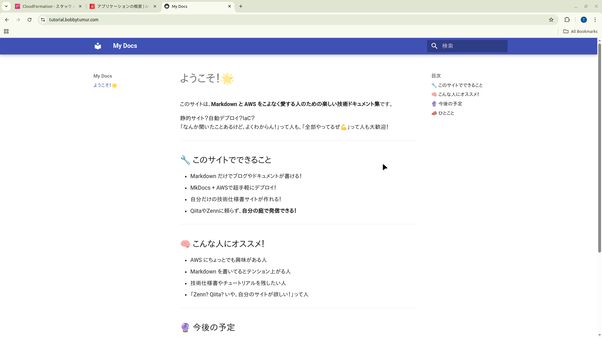 https://tutorial.yourdomain.comでサイトが公開されます。
